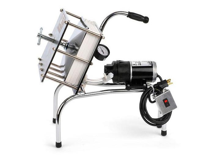 Ποσότητα Φιλτραρίσματος 270 lt/hr, ανάλογα την τρυγία. Δυνατότητα προσαρμογής φιλτρόχαρτων διαστάσεων 20x20.Διαθέτει Φίλτρο 3 πλακών.